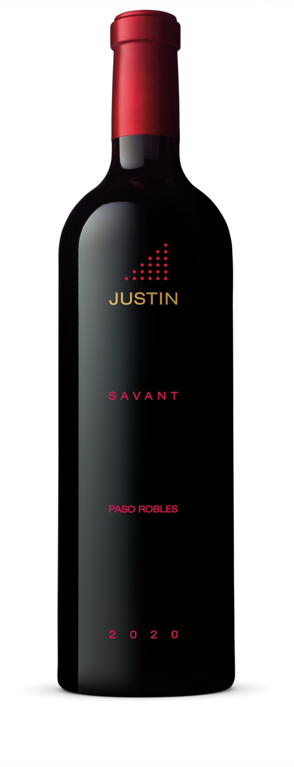 A unique blend that combines the distinctive characteristics of syrah and cabernet sauvignon, the two most highly regarded red grape varieties grown in Paso Robles. The 2020 SAVANT exhibits the depth and complexity that Paso is famous for, while still displaying the elegant, food-friendly JUSTIN style. Rich, with full ripe black fruit, spice, and smoky, meaty elements, it’s a wine that lovers of bold wines will be captivated by, while still being classy enough to display exquisite table manners, pairing well with a wide variety of food.